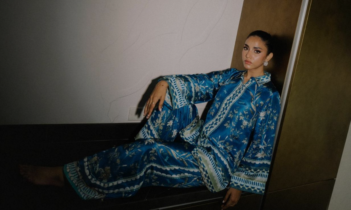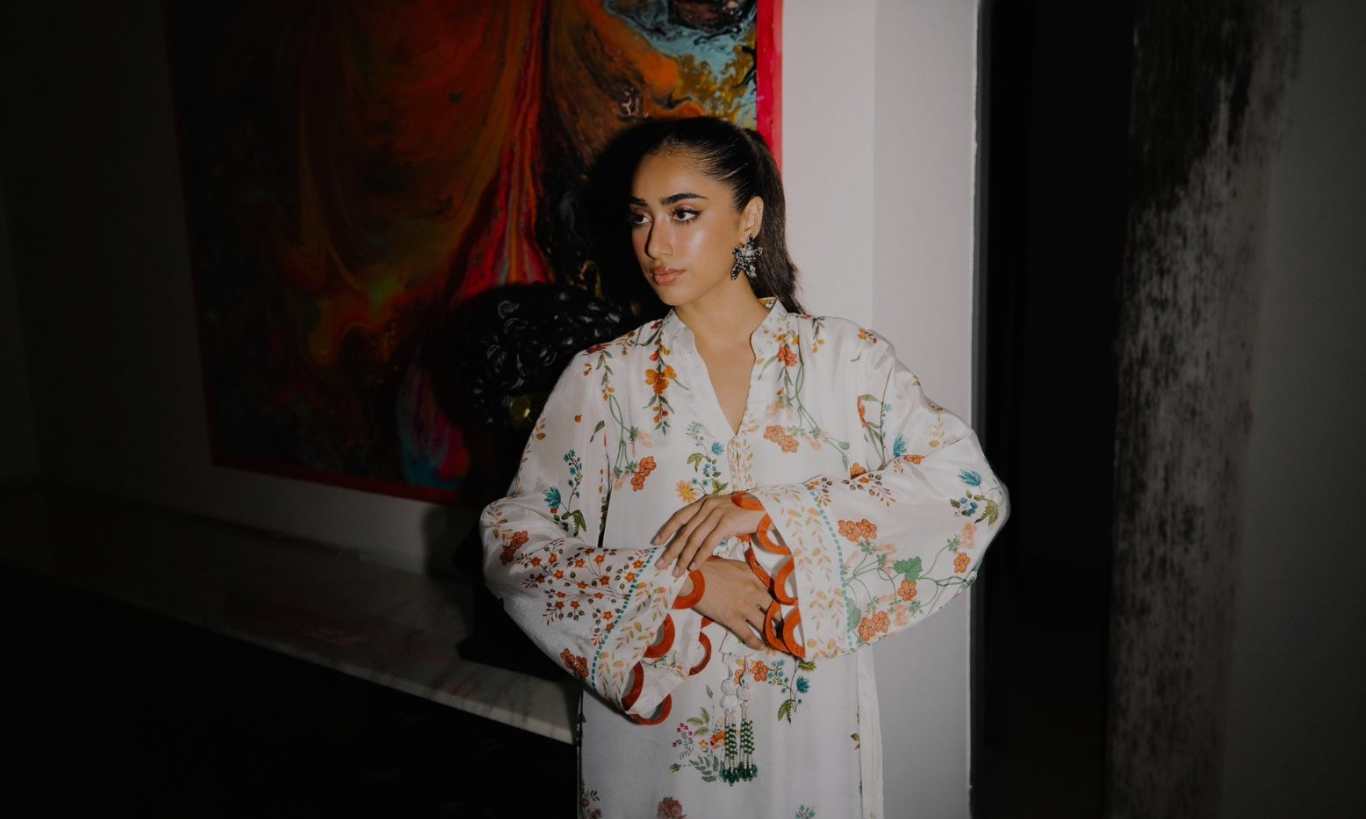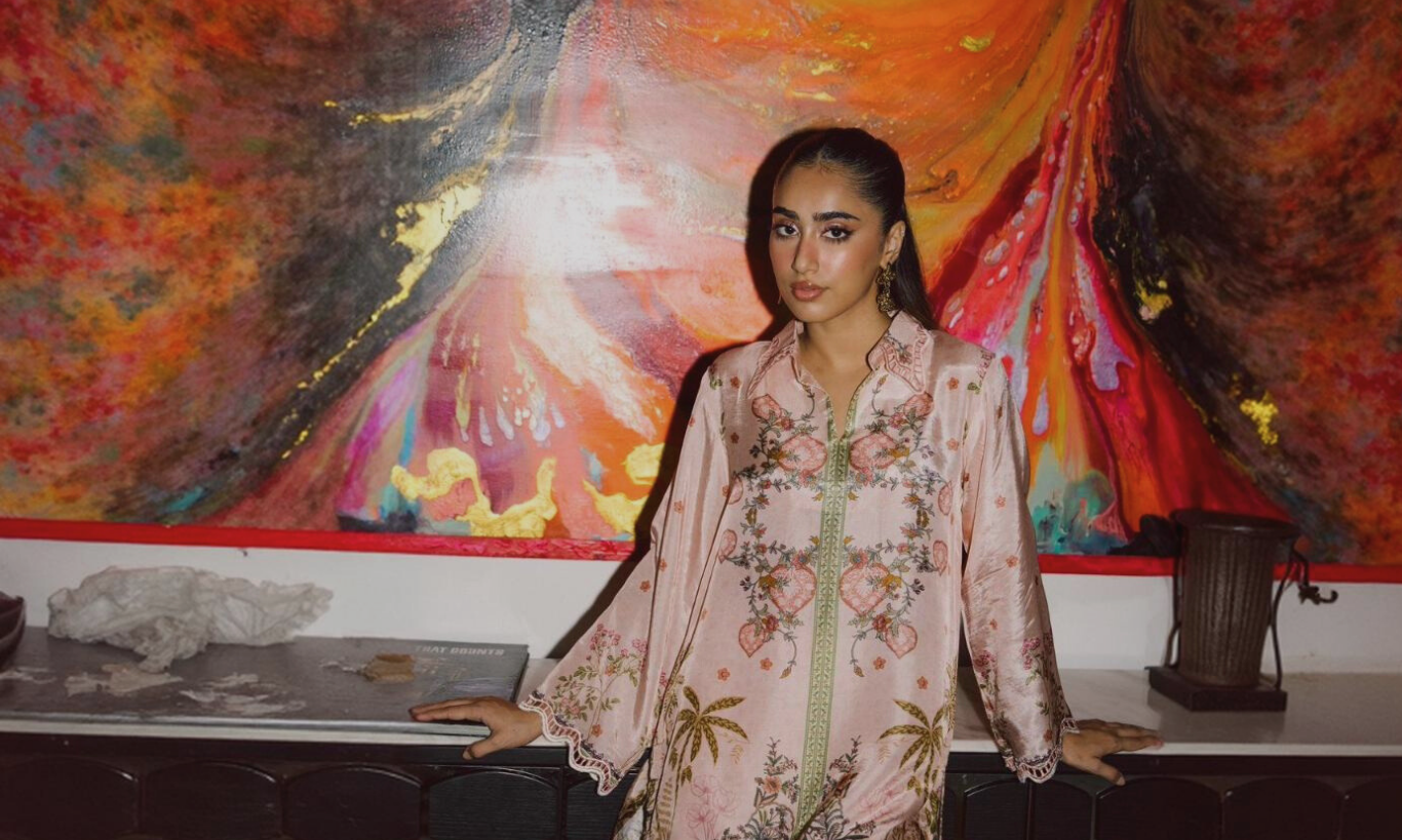 A serene silk kurta set in refreshing soft coral, delicately adorned with palm motifs and intricate embroidery